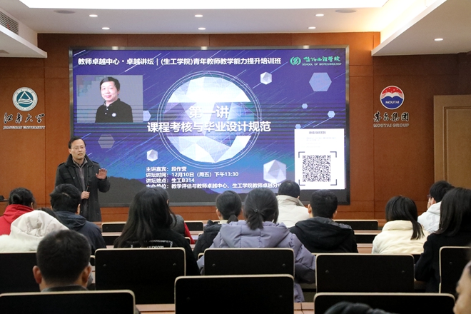 为积极探寻有效途径激励和引导青年教师投身本科教学工作,帮助广大青年教师掌握并迅速提升教学基本技能和教学水平,构筑青年教师成长与发展的空间,hjc356黄金城首页线路教师卓越分中心联合教学评估与教师卓越中心开展“青年教师教学能力提升培训班”。12月10日下午,特邀校教学督导组组长段作营老师在生工B314启动培训班第一讲“课程考核与毕业设计规范”,来自各学院的六十余位教师参加了本次培训。培训班由hjc356黄金城首页线路教师卓越分中心穆晓清老师主持。